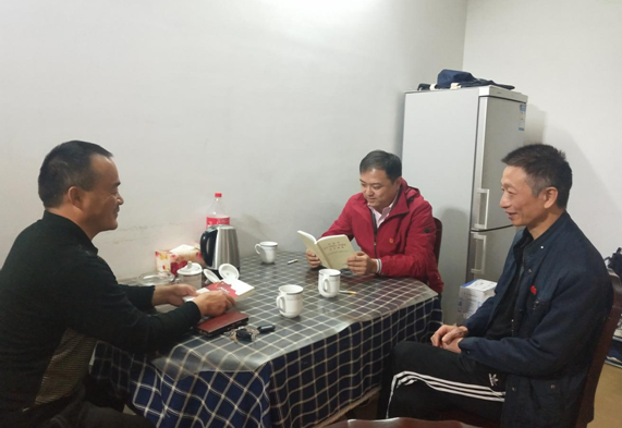 郭宏祥是支部一名老黨員,身患疾病在家休養(yǎng),主題教育開始后,該黨員多次因無法參加組織活動(dòng)而向支部表達(dá)歉意。為此,旅游出租支部書記趙磊主動(dòng)與該同志結(jié)對(duì),為他“送黨課、送教材”。11月3日,旅游出租支部一行三人攜帶慰問品和主題教育相關(guān)教材來到郭宏祥家,在送去組織親切慰問的同時(shí),向其發(fā)放了《習(xí)近平關(guān)于“不忘初心、牢記使命”重要論述選編》、《習(xí)近平新時(shí)代中國特色社會(huì)主義思想學(xué)習(xí)綱要》、主題教育應(yīng)知應(yīng)會(huì)30條口袋讀本以及學(xué)習(xí)筆記本。