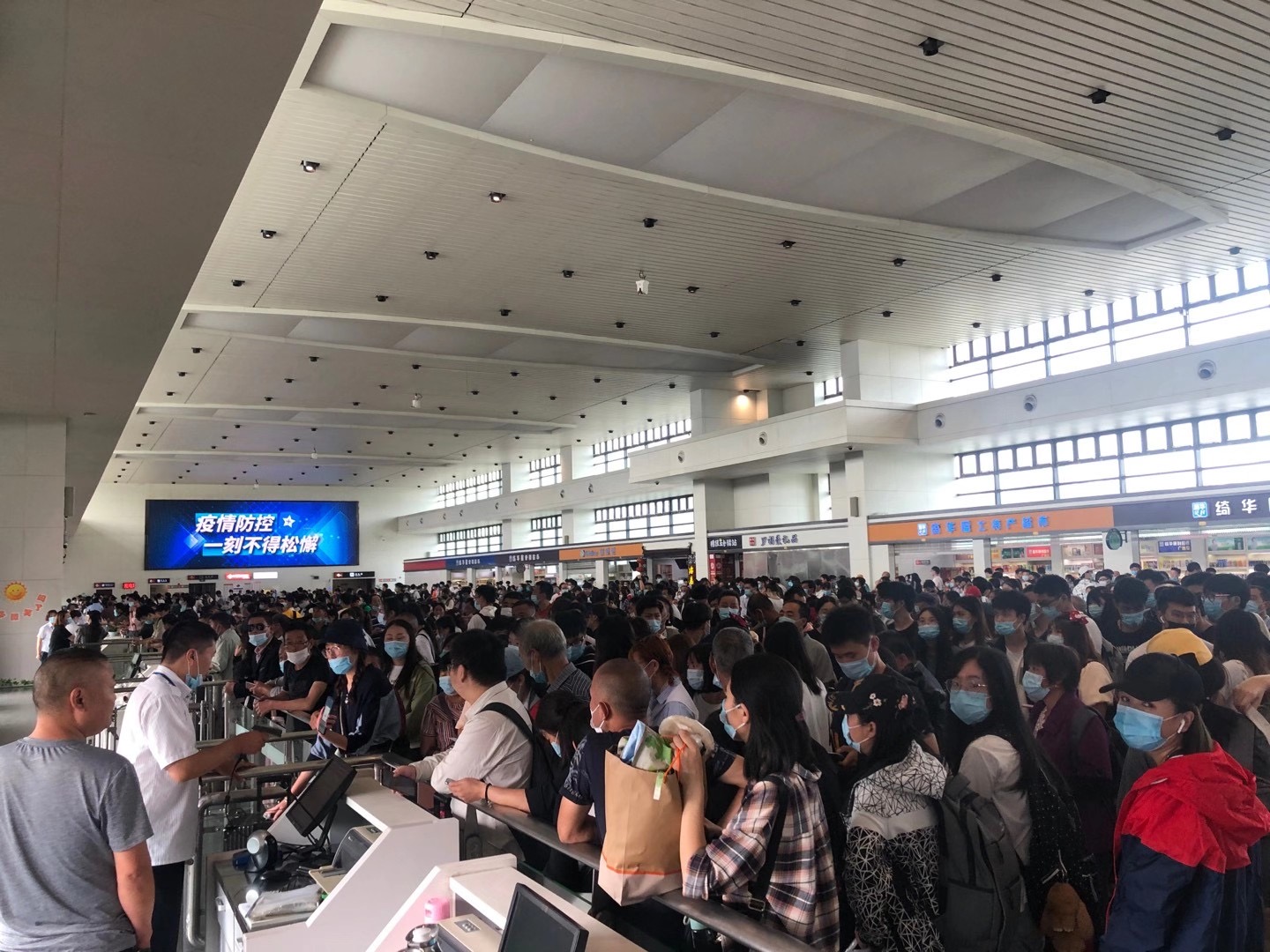 客流高峰期,對部分班次相對密集,旅客流量較大的門號,增加人手,行管人員、志愿者也前往一線,幫助維持秩序,提高服務(wù)質(zhì)量。