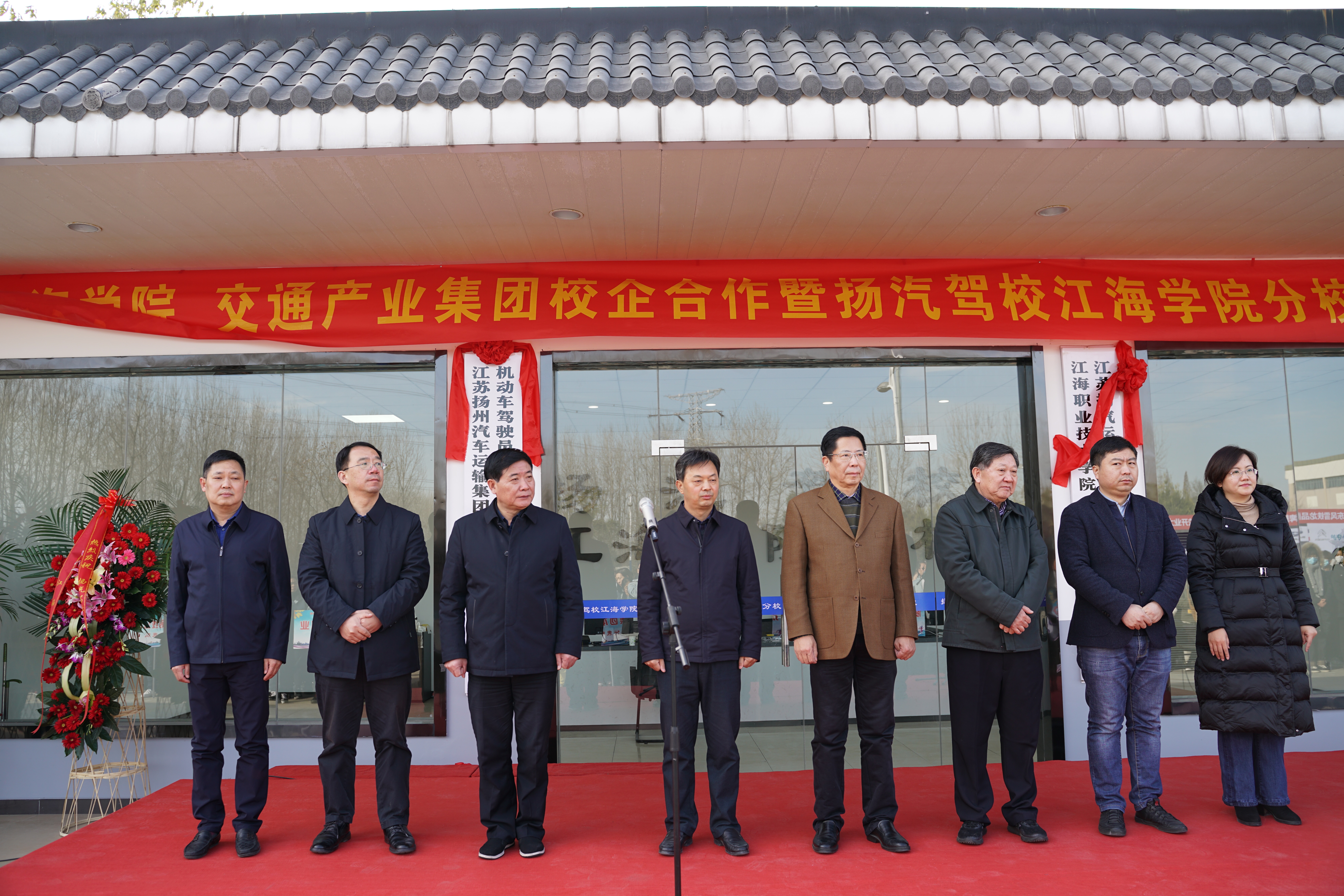 12月15日,揚州市交通產(chǎn)業(yè)集團與江海學院校企合作項目暨揚汽駕校江海學院分校揭牌儀式在江海學院隆重舉行。江海學院董事長、校長孫永如教授,黨委副書記、常務副校長余如進,校長助理、工會主席趙軍;交通產(chǎn)業(yè)集團黨委書記、董事長凌衛(wèi)東,副總經(jīng)理、工會主席吳忠俊,紀委書記、監(jiān)察專員方震,黨委副書記張穎,副總經(jīng)理徐文忠出席揭牌儀式。參加此次活動的還有江海學院師生和交通產(chǎn)業(yè)集團、揚汽集團干部職工代表近300人;顒佑山煌óa(chǎn)業(yè)集團副總經(jīng)理,揚汽集團黨委書記、董事長龔宇峰主持。