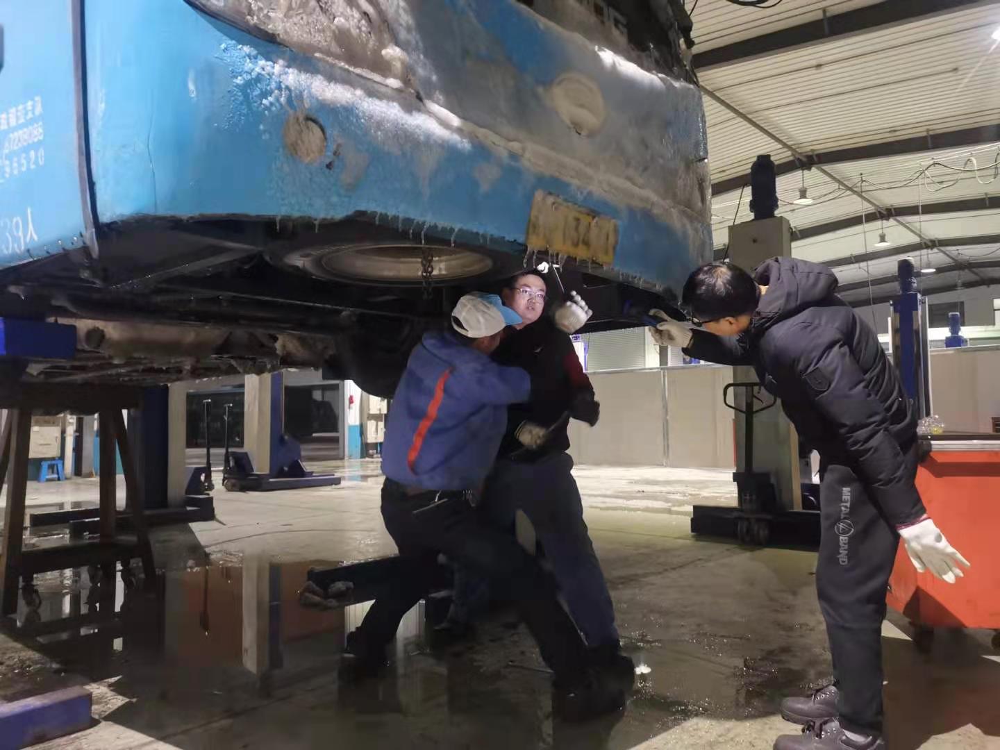 站區(qū)安排人員24小時值班,加強巡查;仔細檢查室內(nèi)外電器、電路、用水、用電等設(shè)施,著重對站區(qū)所有的消防栓進行檢查、包裹,防止出現(xiàn)冰凍損壞;準備充足的防滑草墊、工業(yè)鹽應(yīng)對雨雪冰凍天氣,確保發(fā)車平臺車輛安全進出;各車隊加強車輛安全檢查,同時對駕駛員進行安全教育,要求服從管理,確保后續(xù)行車安全。