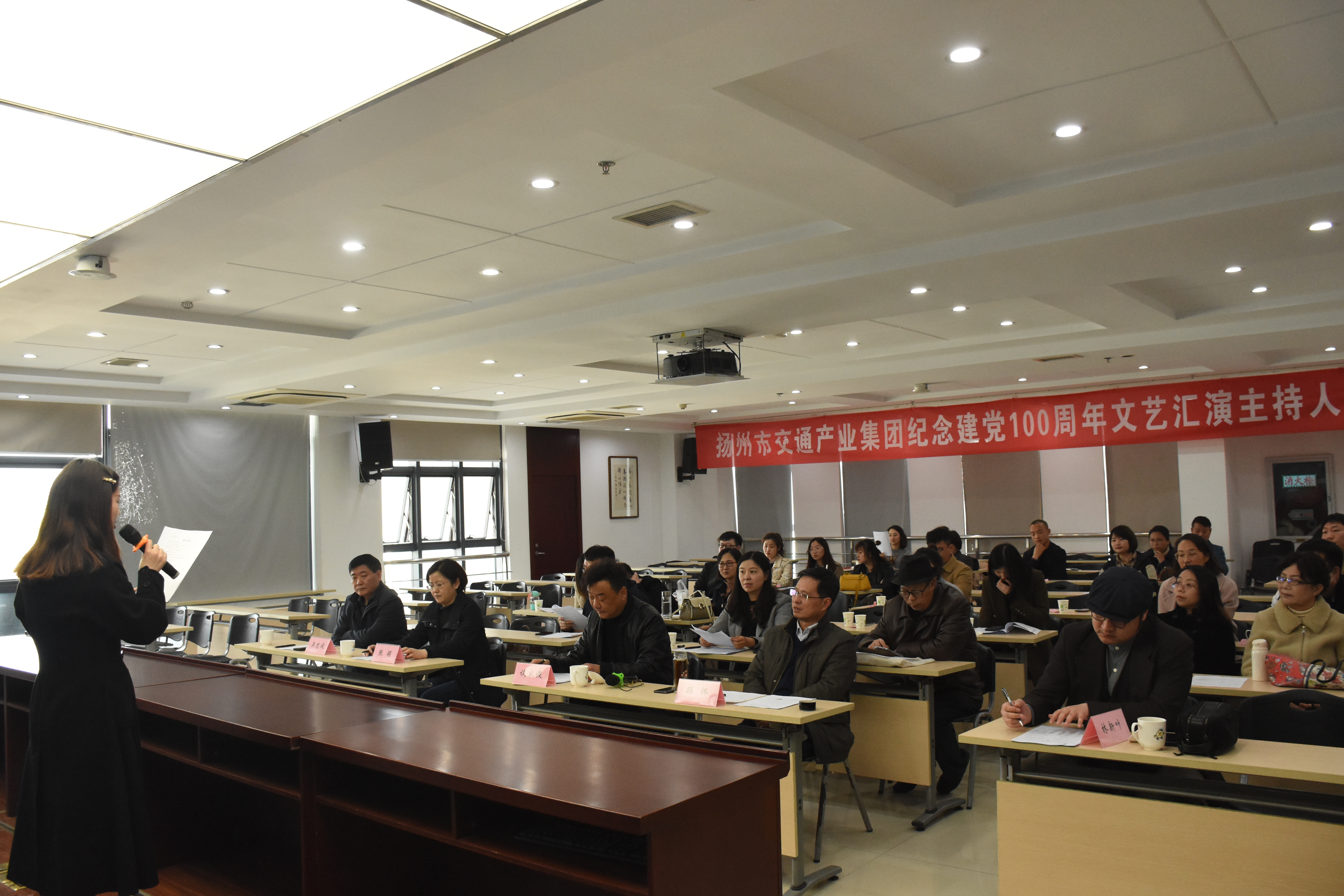 為籌備好慶祝建黨100周年文藝匯演,4月8日下午,文藝匯演的主持人選拔賽在揚(yáng)汽集團(tuán)教培中心舉行,來自交通產(chǎn)業(yè)系統(tǒng)內(nèi)的19名參賽選手在這里進(jìn)行了激烈的角逐。交通產(chǎn)業(yè)集團(tuán)黨委副書記張穎,副總經(jīng)理、工會主席吳忠俊,揚(yáng)汽集團(tuán)黨委副書記、工會主席顧懷、導(dǎo)演談家俊擔(dān)任本次主持人選拔賽的評委。