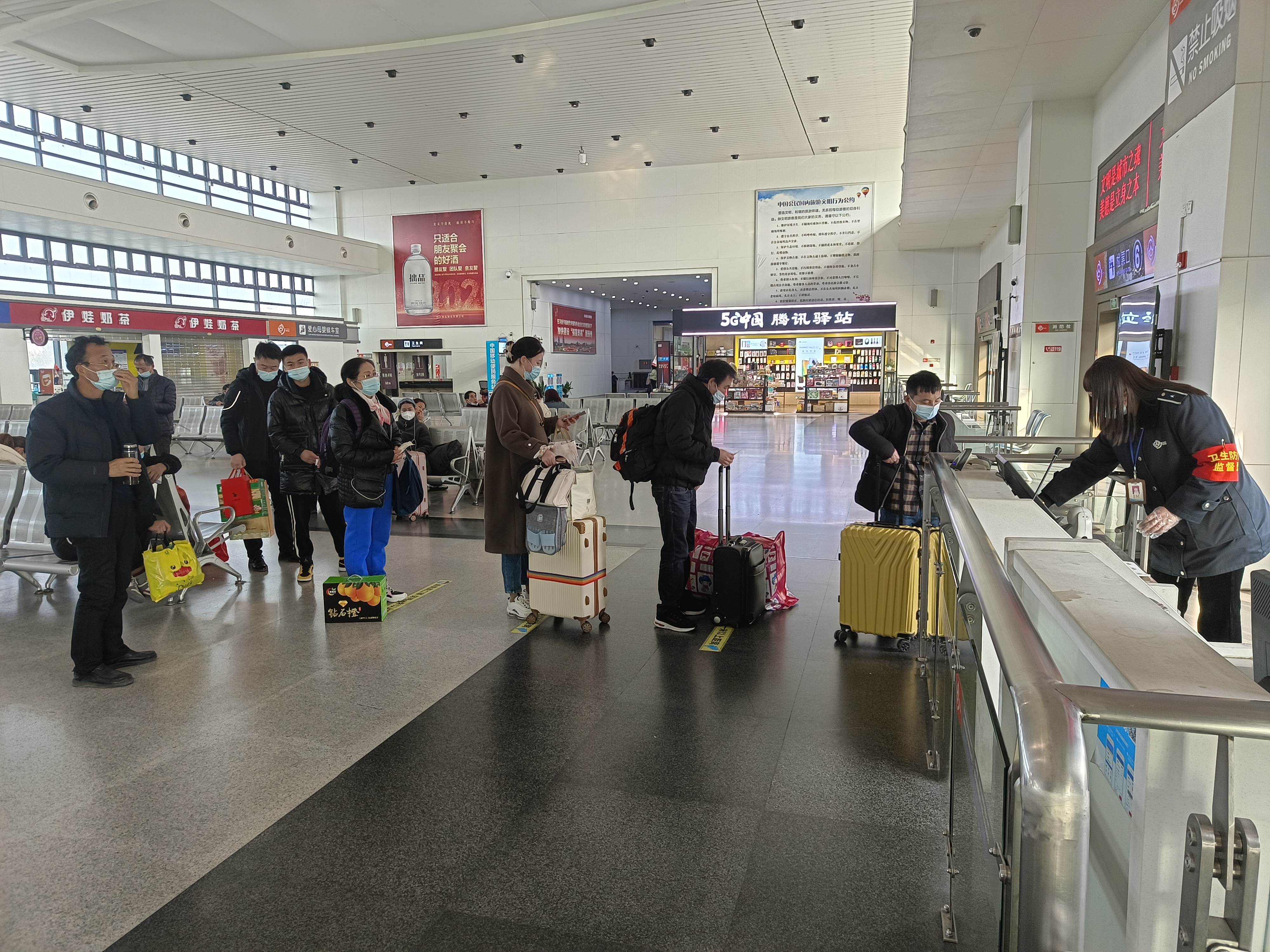 客流量雖然不多,但客運(yùn)站在疫情防控方面并沒有放松警惕,時(shí)刻繃緊疫情防控這根弦,進(jìn)出站口嚴(yán)格按照疫情防控各項(xiàng)舉措,工作人員引導(dǎo)旅客有序分散進(jìn)站候車,主動(dòng)出示健康碼、行程碼,進(jìn)行掃碼測(cè)溫,同時(shí)提醒佩戴好口罩,做好個(gè)人防護(hù),全力保障廣大旅客平安順利出行。