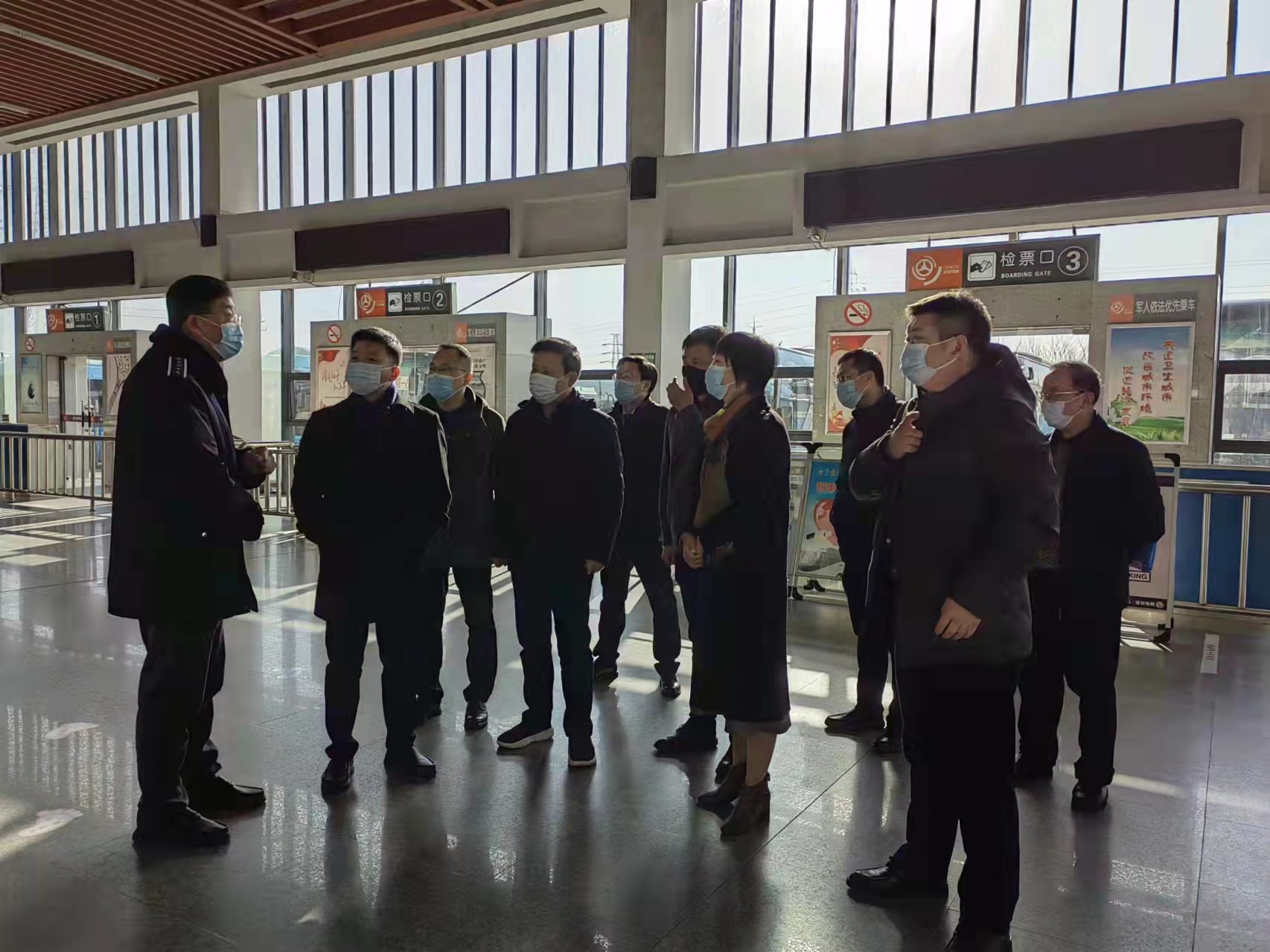 2月5日農(nóng)歷大年初五,江都區(qū)委副書記、區(qū)長朱定金一行赴江都汽車站,督導(dǎo)檢查疫情防控工作,看望慰問堅(jiān)守在疫情防控一線的工作人員,向他們致以新春的祝福和節(jié)日的問候,并送上慰問禮品。江都區(qū)政協(xié)副主席徐守祥及相關(guān)部門負(fù)責(zé)人陪同。