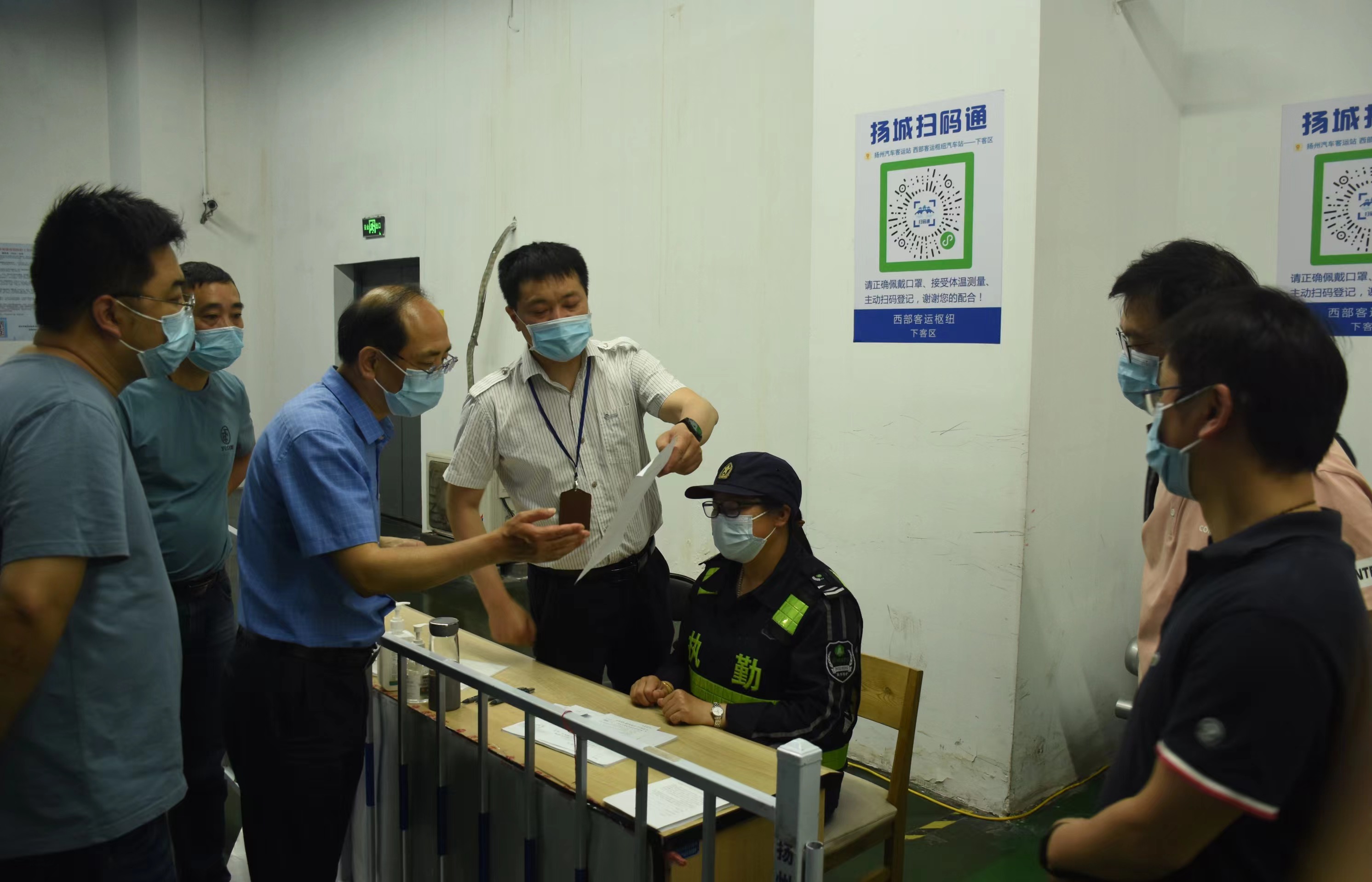 陳家宏一行實(shí)地查看了旅客進(jìn)站口、售票大廳、下客區(qū)出站口等區(qū)域,通過聽取匯報(bào)、溝通交流、翻閱資料等方式詳細(xì)了解了揚(yáng)州汽車站現(xiàn)階段疫情防控工作的落實(shí)情況。