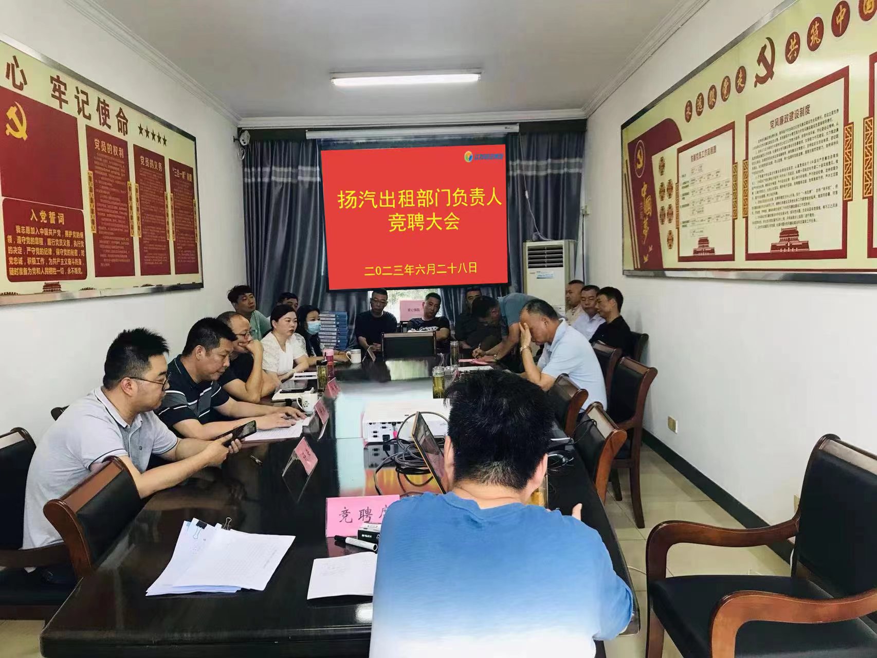 為進(jìn)一步發(fā)揮黨建引領(lǐng)作用,推動(dòng)企業(yè)高質(zhì)量發(fā)展,加大選拔培養(yǎng)管理人才隊(duì)伍建設(shè)力度,6月28日上午,揚(yáng)汽出租組織開展部門負(fù)責(zé)人競聘會(huì),揚(yáng)汽集團(tuán)副總經(jīng)理徐建波、黨群工作部、人力資源部、安全機(jī)務(wù)部、經(jīng)營發(fā)展部及揚(yáng)汽出租相關(guān)負(fù)責(zé)人參加會(huì)議。